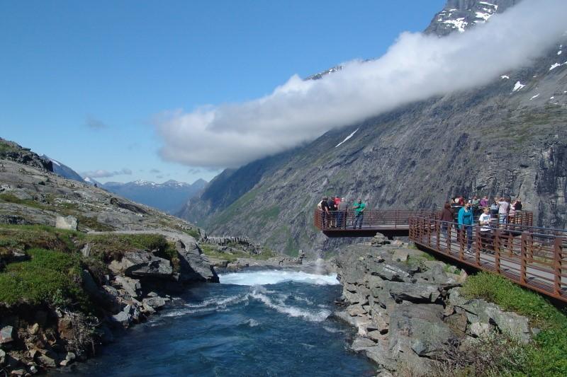 4. den: Dnes a zítra budeme cestovat ve fjordech, hluboce zařezaných údolích naplněných ledovci, řekami, jezery, a hlavně mořskou vodou. Pro tuto jedinečnost jsou norské fjordy součástí světového přírodního dědictví UNESCO. Silnice sem nejprve klesá podél peřejí a vodopádů na divoké řece Rauma. Pak se ocitneme v hlubokém údolí Romsdalen - nejen, že se sem slunce po celou zimu nedostane, ale je tu i nejvyšší kolmá stěna Evropy - Trollveggen (Trolí stěna). Úchvatné zážitky nás pak čekají při stoupání 11 zatáčkami po proslulé silnici Trollstigen. Tato "trolí cesta" vede až do horského sedla, ležícího v nadmořské výšce 900 m. Během odpoledne nás ještě čeká vyhlídková plavba po fjordu Geirangerfjord (UNESCO), mj. kolem vodopádů Sedm sester, která je v ceně zájezdu. V Geirangeru si také můžete nakoupit suvenýry. Pokud nám bude přát počasí, vyjedeme od fjordu desítkami serpentin až na vyhlídku na hoře Dalsnibba (téměř 1 500 m n. m.). Po příjezdu na další hotel večeře (je v ceně zájezdu).