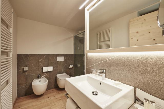 minibar, jablka z oblasti Val Venosta, termofor, psací stůl, župany